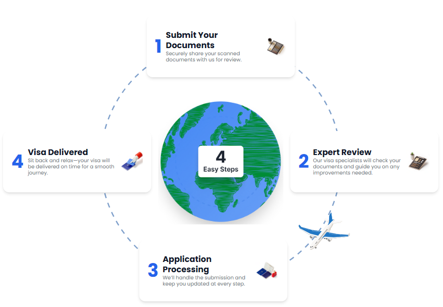 From paperwork to approval, our 4-step visa process makes it fast and smooth.